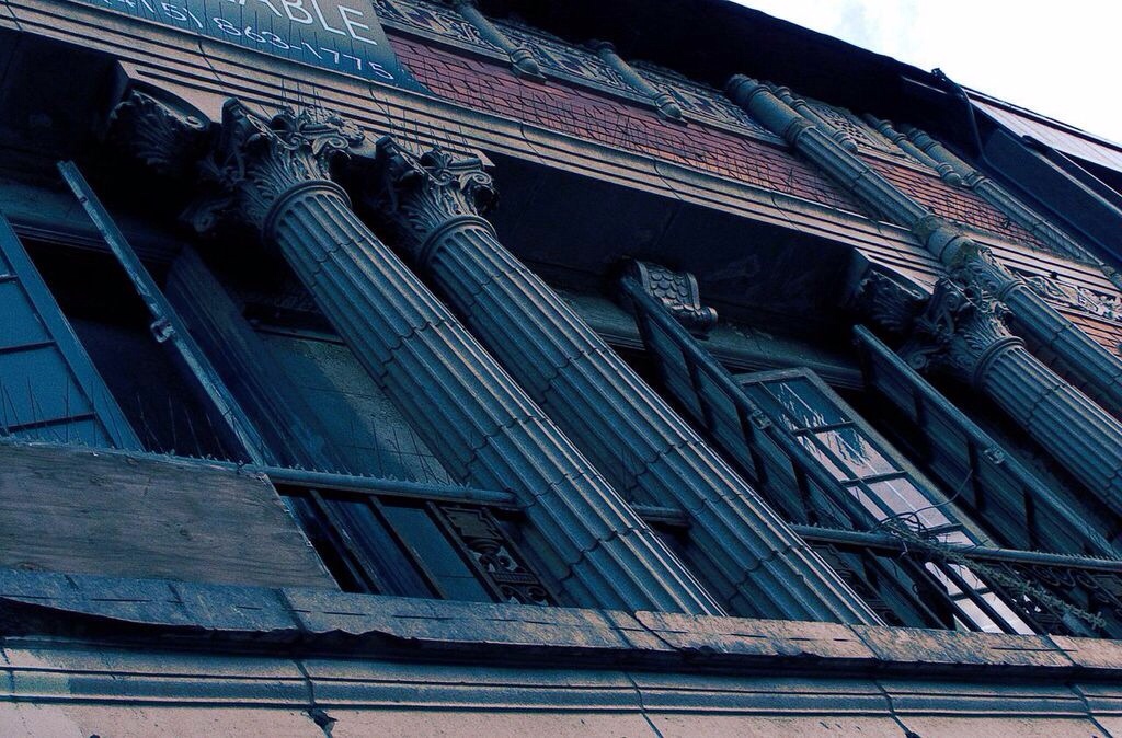 Today I took pictures of an old building that I am quite certain will soon lose its beautiful crumbling facade when someone buys it and decides that restoring said facade would cut into profits too much and instead they replace the facade with a facile quote of said facade. Because this has already happened to the two buildings adjacent to this one that were built in similar styles some time ago when architectural flourishes were not seen as excessive or if they were seen as excessive then it was still worth the time and money to carry them out in order to simply be excessive.
